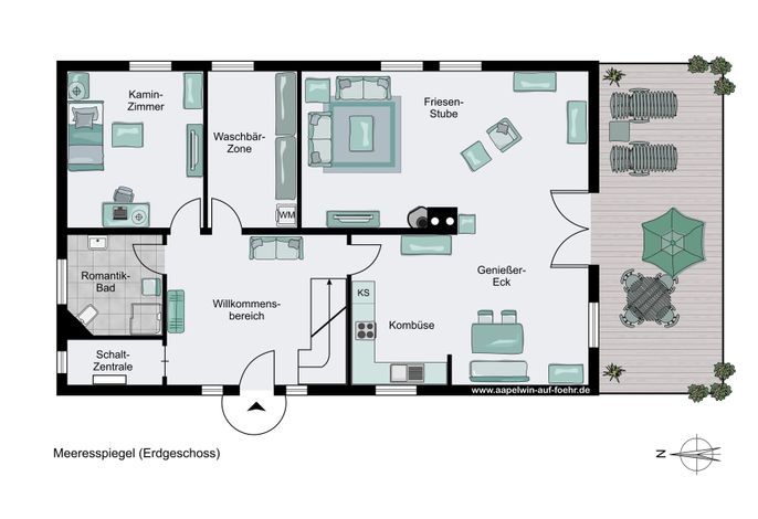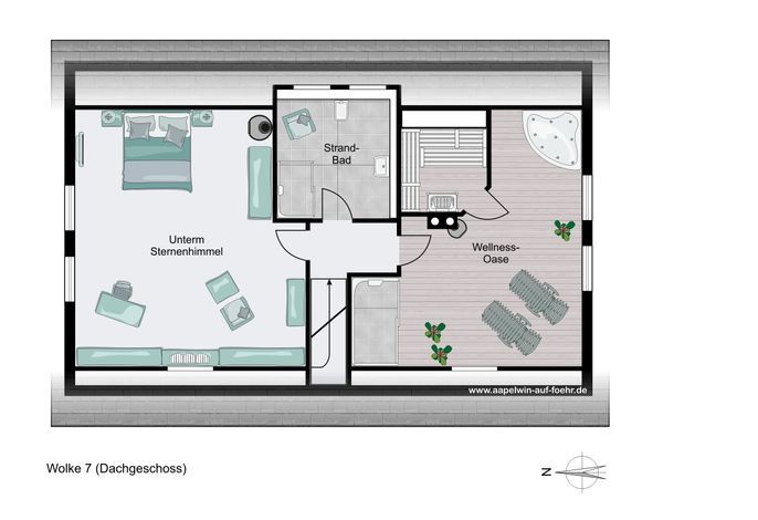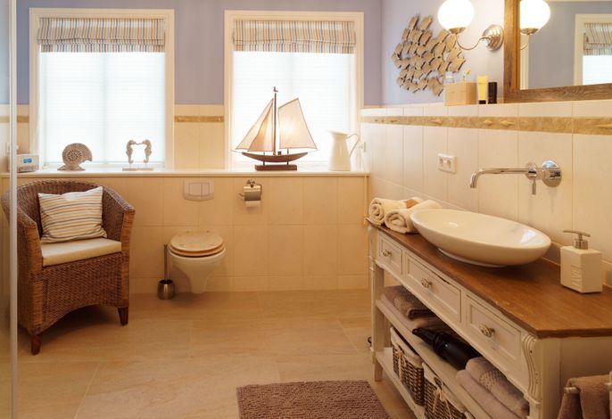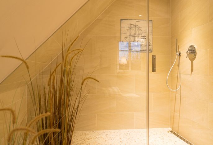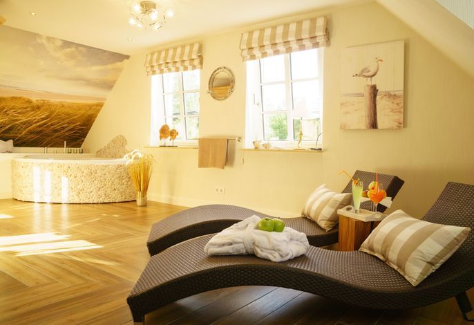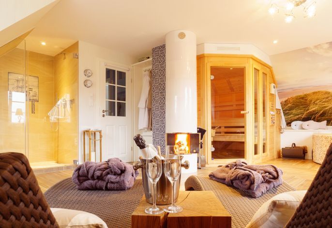 Das zauberhafte 5-Sterne-Haus Aapelwin auf Föhr besticht durch seine Großzügigkeit und den außergewöhnlichen Komfort sowohl im Innen-, als auch im Außenbereich. Auf seinen über 153 m² können bis zu drei Erwachsene pure Erholung, Entschleunigung und Entspannung finden. Die drei Mylin-Kachelöfen sind mit Recht als Highlight hervorzuheben. Diese sorgen sowohl im offenen Wohn-/ Essbereich des Erdgeschosses, als auch im Wellnesszimmer im OG, sowie im Hauptschlafzimmer für eine wohlige Atmosphäre. Je Stockwerk befinden sich im Aapelwin auf Föhr ein Duschbad und ein Schlafzimmer. Das beachtliche Tageslicht-Wellnesszimmer verfügt neben einer Sauna und einer sehr komfortablen Dusche mit Schwallbrause auch noch über einen Whirlpool.