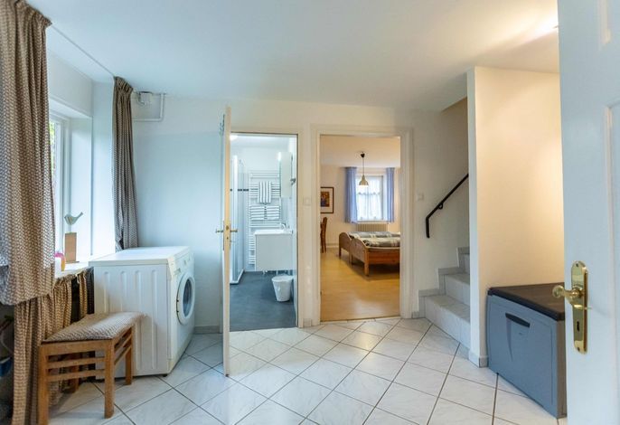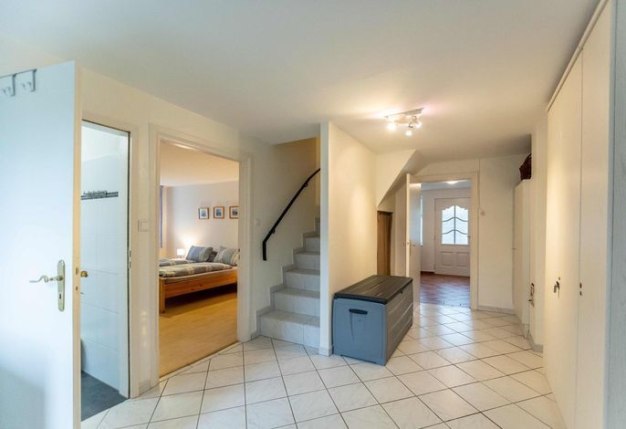 Die komplett neu gestaltete und hervorragend ausgestattete Küche ist ein kulinarischer Traum, der mit Geschirrspüler, Ceranfeld, Backofen und Mikrowelle keine Wünsche offen lässt. Hier können Sie nach Herzenslust für Ihre Liebsten kochen und sie mit kulinarischen Genüssen verwöhnen. Im Erdgeschoss erstreckt sich das großzügige Wohnzimmer, das Platz für gemütliche Stunden bietet, und ein zusätzlicher Esstisch lädt zu gemeinsamen Mahlzeiten ein. Zwei Schlafzimmer mit jeweils zwei Einzelbetten, die bei Bedarf zu Doppelbetten zusammengeschoben werden können, sowie ein drittes Schlafzimmer mit einem weiteren Einzelbett bieten bequeme Übernachtungsmöglichkeiten. Das Duschbad mit Fenster, das 2019 komplett saniert wurde, rundet das Angebot im Erdgeschoss ab.