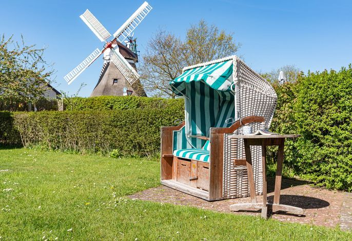 Verbringen Sie ihren Urlaub in einem typischem Föhrer Haus mit Geschichte. Im ehemaligen reetgedeckten Mühlenhaus steht Ihnen Ihr Hausteil mit eigenem Parkplatz sowie einem eigenen Garten mit zwei Terrassen in südwestlicher Ausrichtung zur Verfügung. Im Erdgeschoss des liebevoll eingerichteten Hausteils befindet sich ein offener Wohn- Essbereich mit Küche und das Badezimmer mit Badewanne. Außerdem finden Sie in einem separatem Abstellraum eine Waschmaschine und einen Trockner, die ausschließlich zur Wohnung gehören.