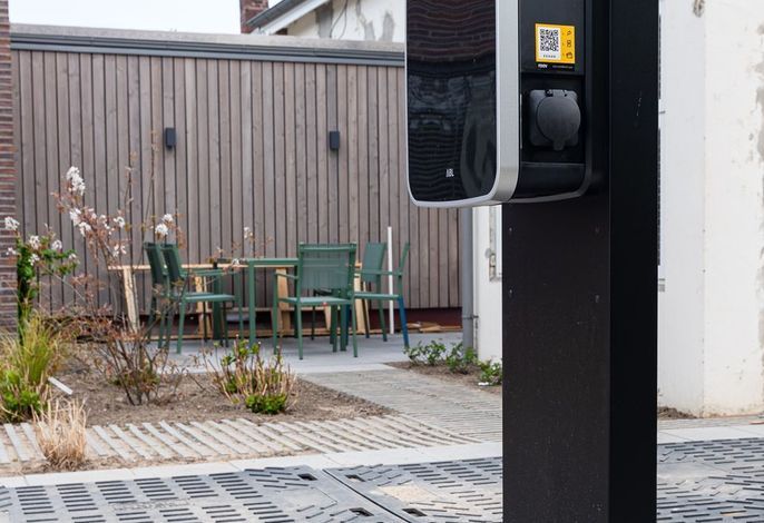 Die Sauna befindet sich im Gartenhaus und steht den Gästen beider Hausteile gemeinschaftlich zur Verfügung. Ein eigener PKW-Stellplatz mit E-Auto-Ladestation und ein eigener Fahrradständer direkt am Haus runden das Angebot ab.