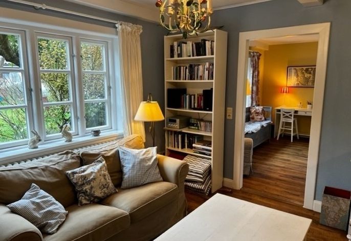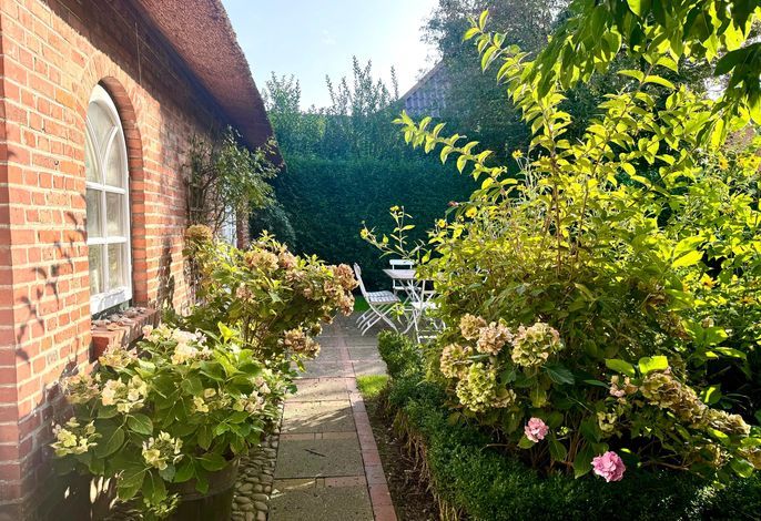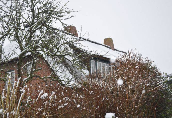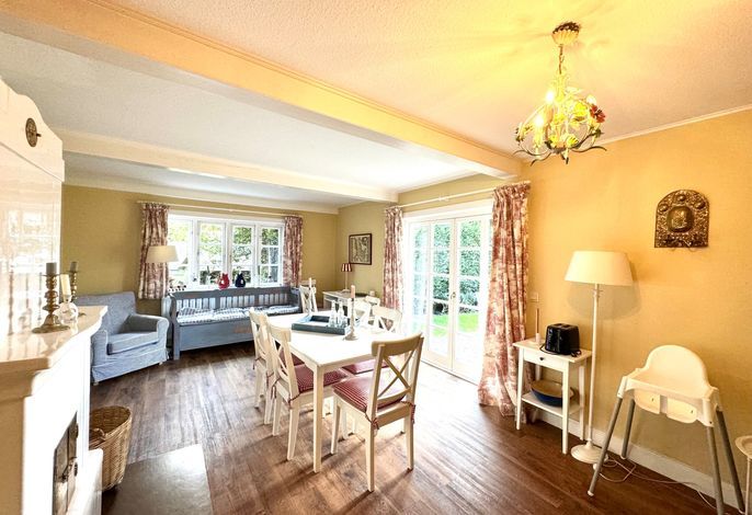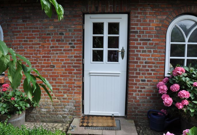 Unser Haus mit seinem schön eingewachsenen Garten liegt zwischen zwei kleinen Stichstraßen. Nebenan ist ein Bauernhof, dahinter liegt direkt die Marsch, welche sich über ca. 1-2 km bis zum Deich hinzieht.
