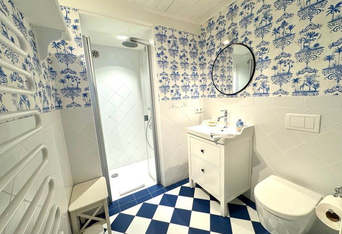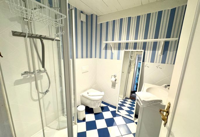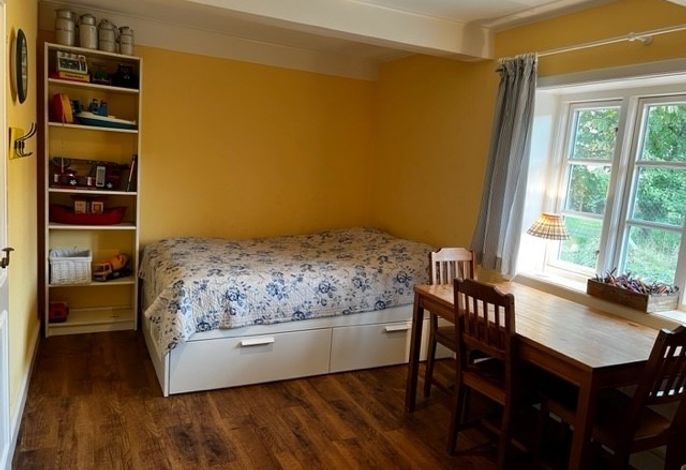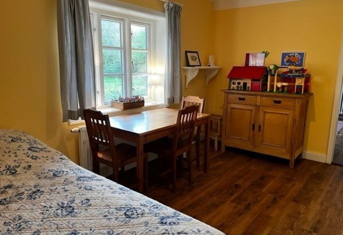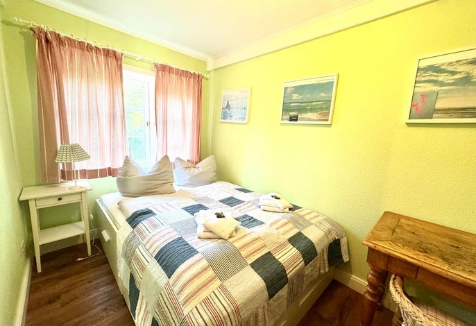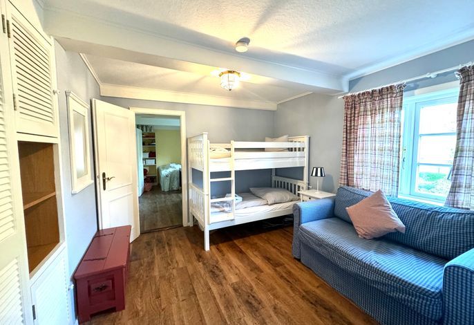 Die Familienwohnung bietet Platz für bis zu 8 Personen und ein Kleinkind. Sie verfügt über vier Schlafzimmer: Ein Elternzimmer mit Doppelbett, zwei hintereinanderliegende Kinderzimmer mit je 2 Betten und ein Zimmer mit einem Ehebett. Ein Kinderreisebett kann bei Bedarf hinzugebucht werden.