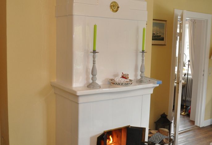 Zum Wohnen bietet die Familienwohnung ein Esszimmer mit altem Kachelofen und Zugang zur Terrasse, ein gemütliches Wohnzimmer, Küche und zwei Badezimmer mit WC und Dusche. Küche und Badezimmer sind neu renoviert.