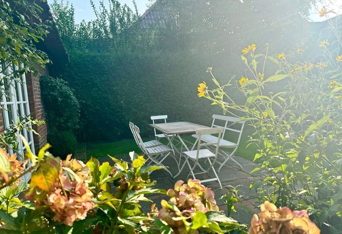Die Wohnung hat eine schöne helle Terrasse und einen eigenen kleinen Garten.