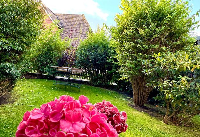 Unser Haus mit seinem schön eingewachsenen Garten liegt zwischen zwei kleinen Stichstraßen. Nebenan ist ein Bauernhof, dahinter liegt direkt die Marsch, welche sich über ca. 1-2 km bis zum Deich hinzieht.
