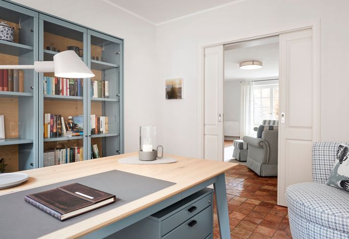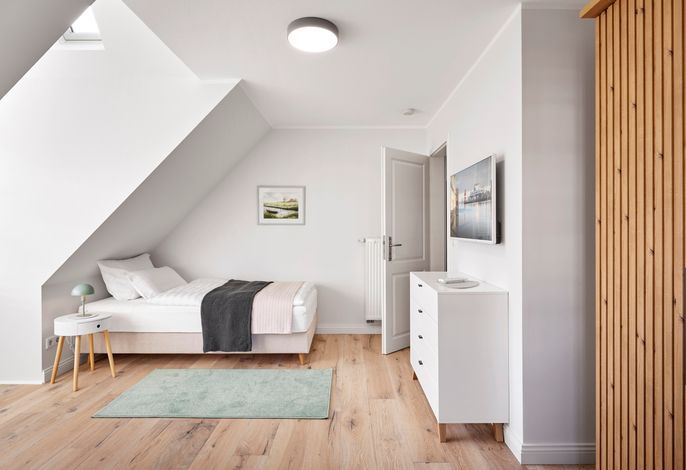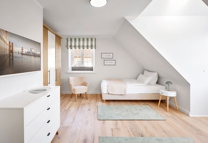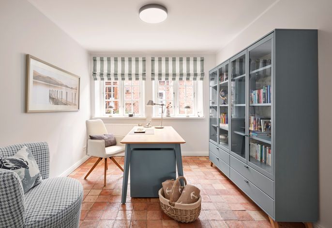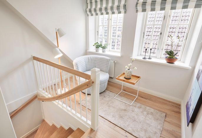 Dieses elegante Ferienhaus auf zwei Ebenen vereint Großzügigkeit, stilvolles Design und höchsten Komfort inmitten der charmanten Gassen von Wyk. Das Erdgeschoss besticht durch einen lichtdurchfluteten Wohn- und Essbereich, eine moderne Küche, einen Hauswirtschaftsraum sowie ein vielseitig nutzbares Arbeits- oder Lesezimmer. Ergänzt wird das Raumangebot durch ein geschmackvolles Duschbad mit WC.