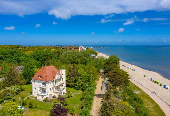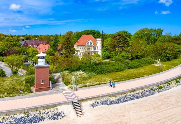 + Einmaliges Ambiente: Die Anfang des 20. Jahrhunderts gebaute Villa Haus Olhörn steht auf einem parkähnlichem 2.907 qm großen Grundstück am Leuchtturm, in ruhiger und exklusiver Strandlage.