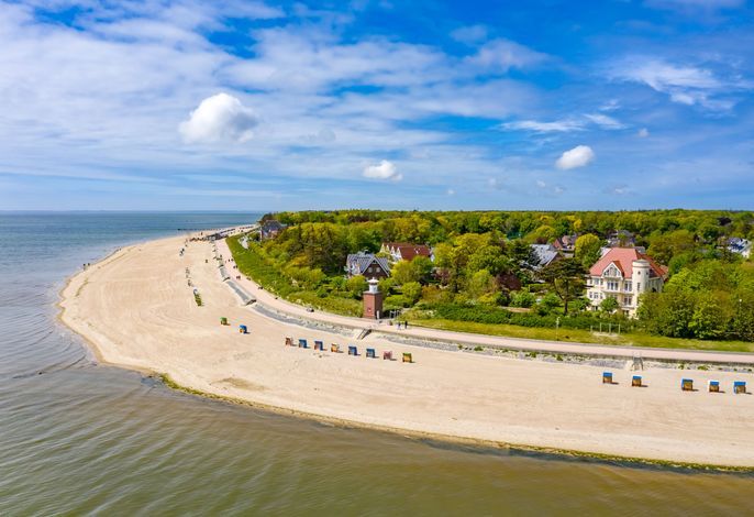 + Perfekte Strandlage: Direkt am Strand beim Leuchtturm Olhörn in Wyk auf Föhr.