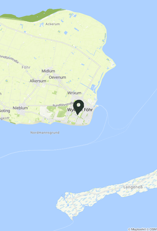 Das Haus liegt in Wyk in einer sehr ruhigen Wohngegend, wenige Minuten vom Südstrand und Stadtkern entfernt. Einkaufsmöglichkeiten des täglichen Bedarfs, Cafés und Restaurant, Wellnesseinrichtungen sowie eine Surfschule befinden sich in nächster Nähe. Das Grundstück grenzt an einen Kurpark, der zum Nordic-Walking und Joggen einlädt.