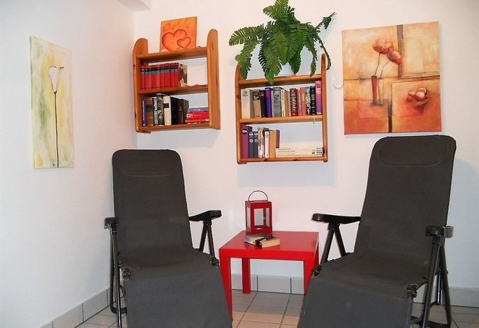Die Wohnung Apfelblüte liegt im Haus Sommergarten, einer großen Ferienhausanlage mit gemütlichen Sitzmöglichkeiten. Für unsere kleinen Gäste gibt es ausreichend Platz zum Toben und selbstverständlich Spielmöglichkeiten. Die zentrale Lage in der Badestraße ist der ideale Ausgangsort für Ausflüge. Das Aquafoehr mit seinem Schwimmbad, Sauna und Wellnessangeboten, die Wyker Innenstadt, das Friesenmuseum und der schöne Strand sind in wenigen Minuten zu erreichen. Im Untergeschoss des Hauses 40a befindet sich auch ein hauseigenes Schwimmbad (kostenfrei), ein Ruheraum und eine Dampfsauna (gegen Gebühr) sowie ein Dampfbad(gegen Gebühr)und einige Fitnessgeräte (kostenfrei) zur gemeinschaftlichen Nutzung. Münzwaschmaschine und Münztrockner stehen zur gemeinschaftlichen Nutzung ebenfalls zur Verfügung. Zur Wohnung Apfelblüte gehört ein eigener Parkplatz.