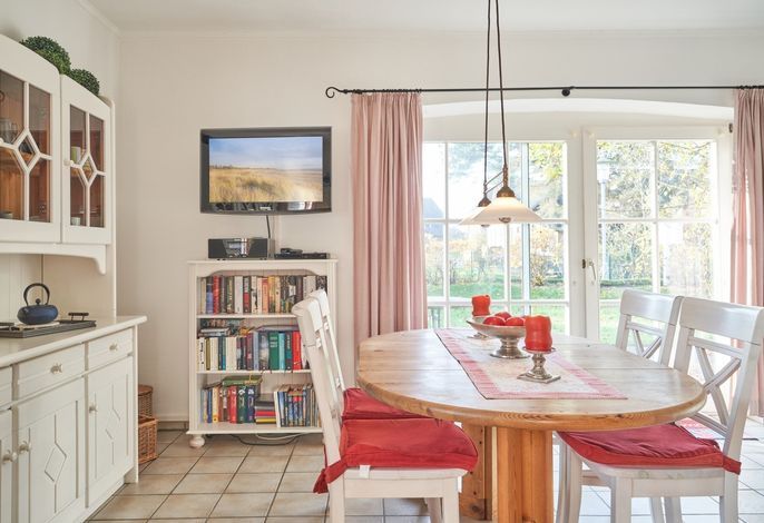 Herzlich willkommen in unserem Ferienhaus Apfelgarten in Wrixum auf Föhr. Auf 70 m² ist hier Platz für pures Urlaubsglück und 4 Personen. Unser gepflegtes und liebevoll eingerichtetes Doppelhaus liegt fast direkt an der Marsch, eingebettet in einem kleinen Nachbarort von Wyk mit dörflichem Charme. Hier hat man auch im Hochsommer einen Platz der Abgeschiedenheit und Ruhe und ist trotzdem vom Innenstadtbereich von Wyk mit seinen Geschäften und der Promenade sowie vom Strand nur etwa 5-10 Fahrradminuten entfernt.