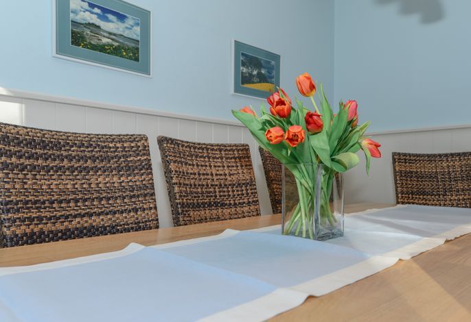 Im Erdgeschoss erwartet Sie ein gemütliches Wohnzimmer mit hochwertigen Möbeln, Kabel-TV, Musikanlage, Telefon, WLAN sowie einem großzügigen Essbereich.