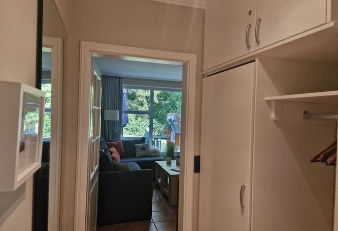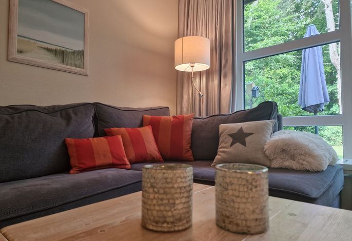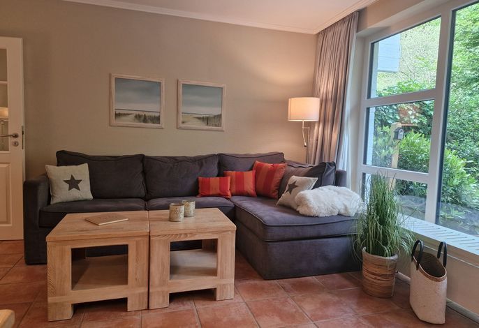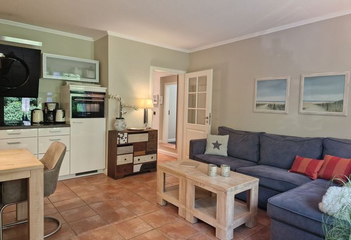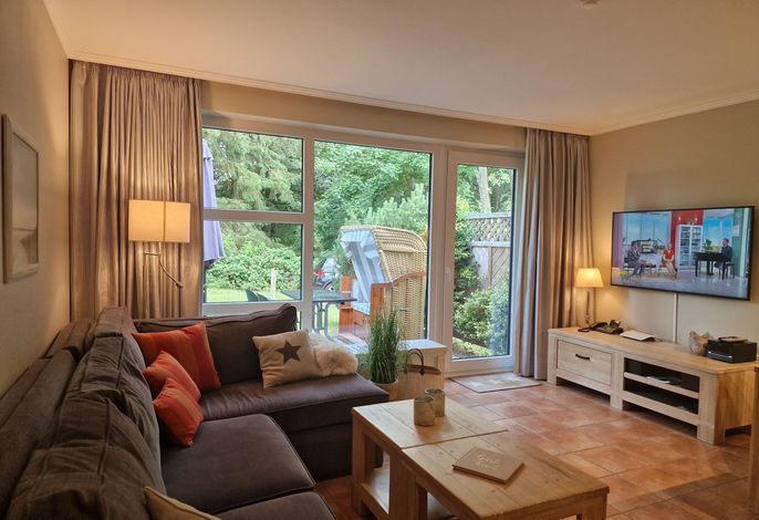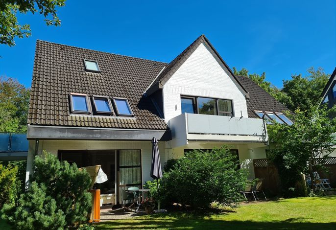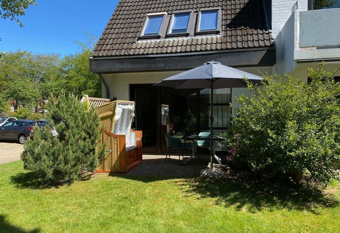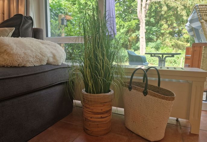 Die Wohnung befindet sich im Erdgeschoß und verfügt über eine Terrasse mit Strandkorb und Blick ins Grüne. Im Wohnbereich gibt es eine gemütliche Couch, ein Duschbad und 1 Schlafzimmer. Zur Wohnung gehört ein PKW-Stellplatz, Ihre Fahrräder können Sie direkt am Haus abstellen.