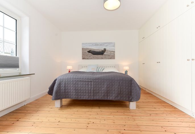 Mit einem großen Einbauschrank und einem komfortablen Doppelbett bietet das Schlafzimmer alles, was Sie für erholsame Nächte benötigen.