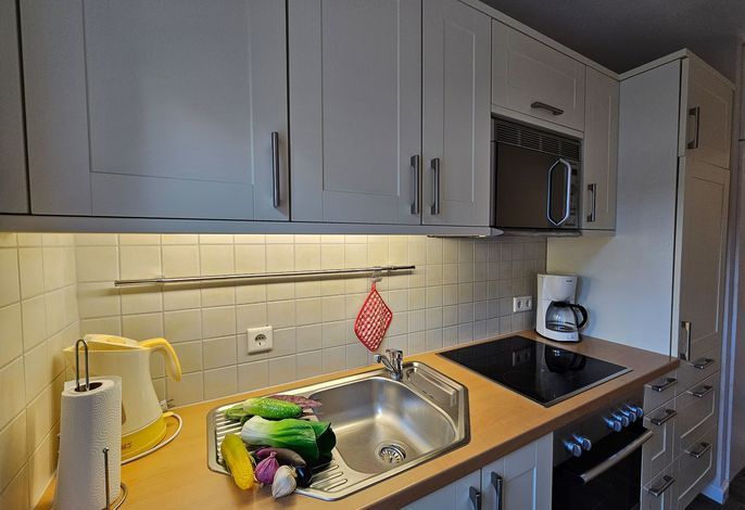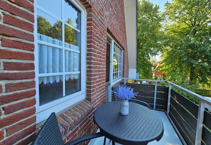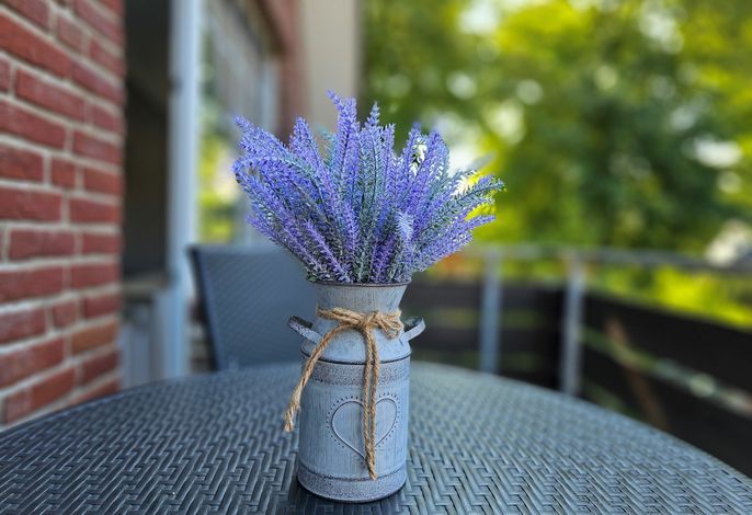Die Wohnung befindet sich im Obergeschoß und verfügt über 2 Balkone (zur Friedrichstraße und seitlich) mit Blick zur Mühle. Im Wohnbereich gibt es eine voll ausgestattete Küche, eine gemütliche Couch, ein Duschbad und ein Schlafzimmer. Zur Wohnung gehört ein PKW-Stellplatz hinter dem Haus (etwas beengte Parksituation), Ihre Fahrräder können Sie hinter dem Haus abstellen.