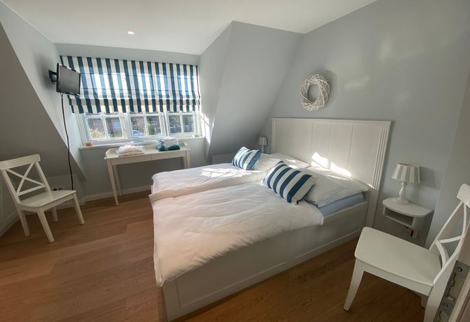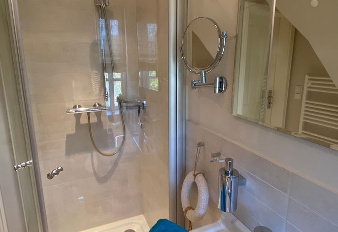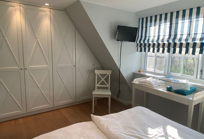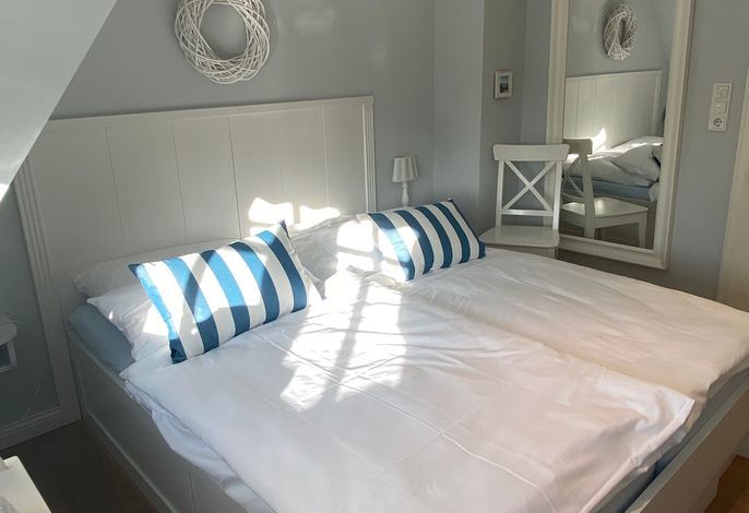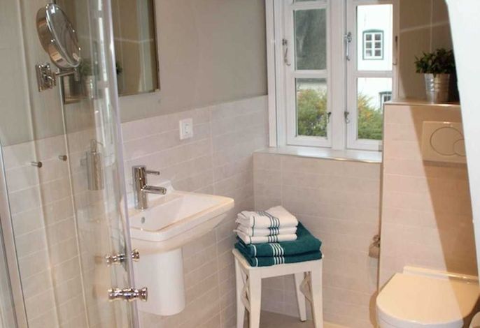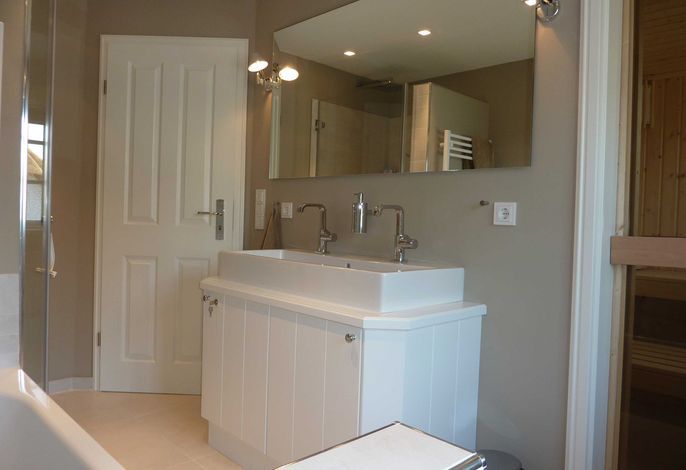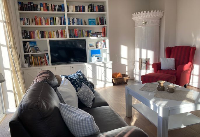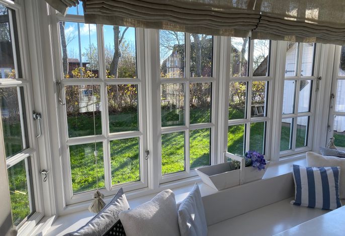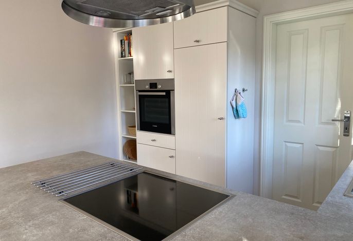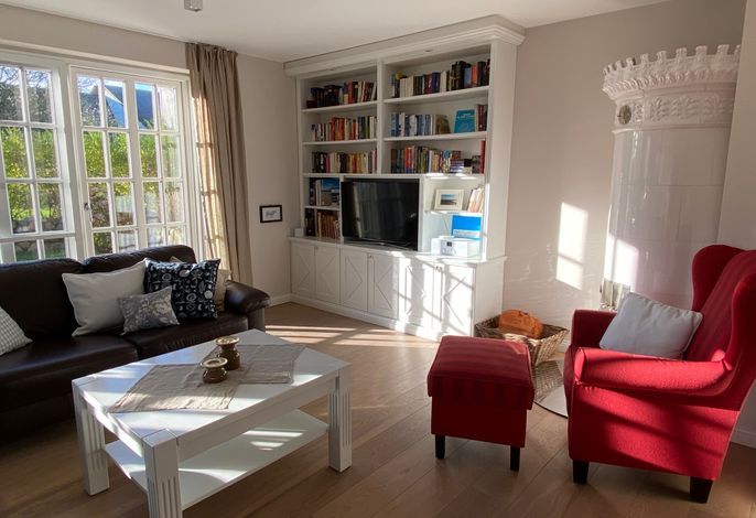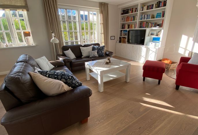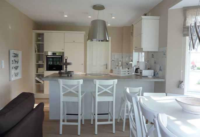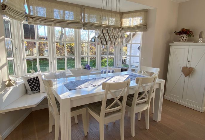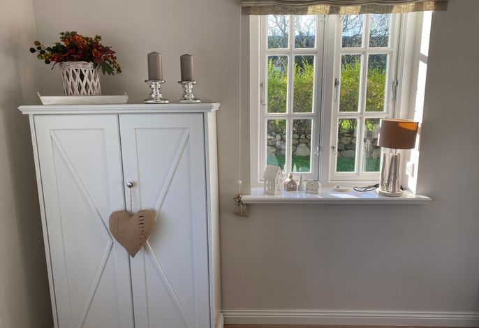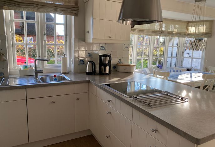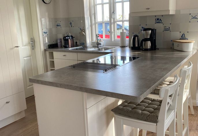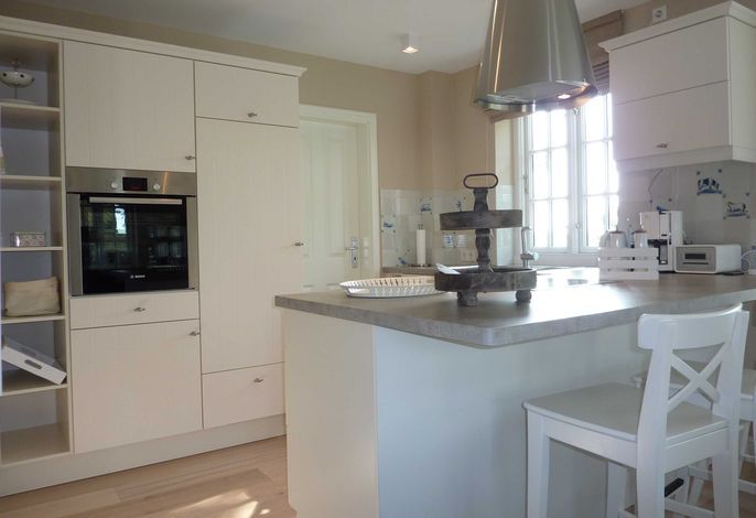 Und innen z. B. auf vom Inseltischler gefertigte Tische und weiße Einbaumöbel in nahezu allen Räume. Sowie auf einen historischen Mylin-Ofen, hochwertige Eichenböden, Fußbodenheizung im ganzen Haus, einen gemütlichen Wohnbereich, eine maßgefertigte Küche mit angrenzendem Hauswirtschaftsraum, 3 Bäder mit Walk-In-Dusche - eins davon mit Badewanne und Sauna. Und ... und ... und ...