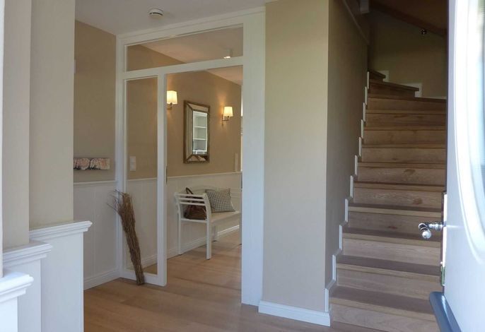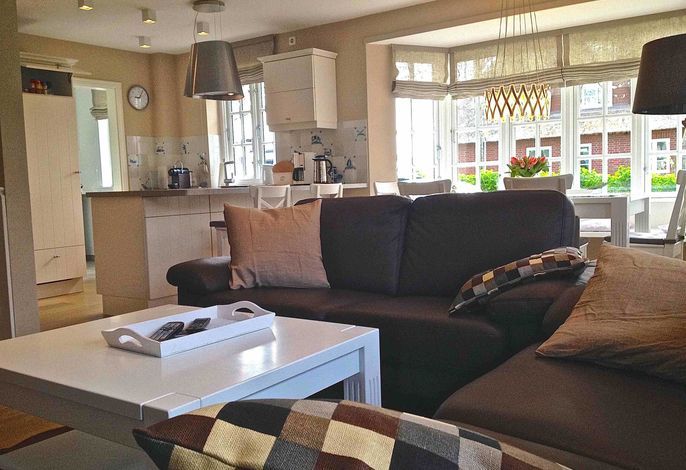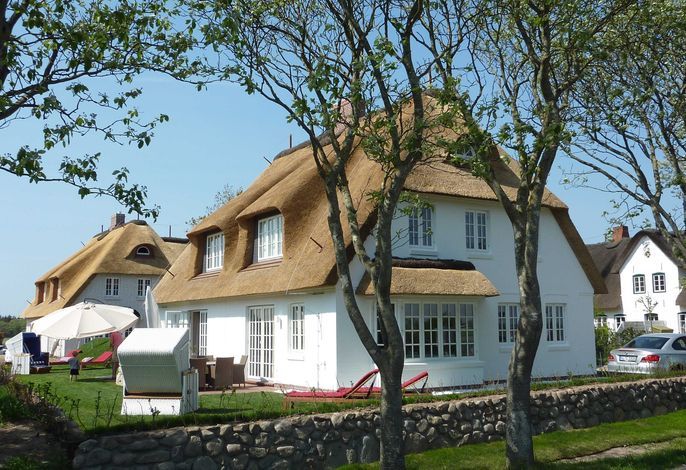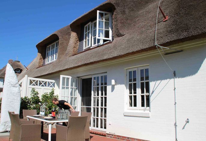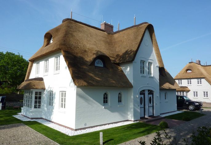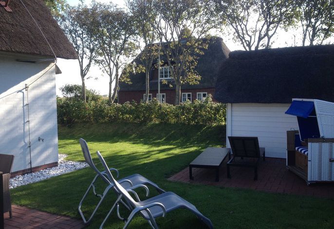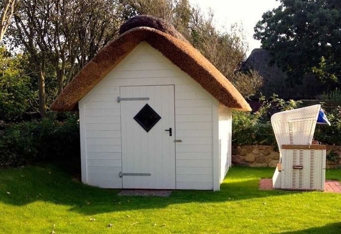 Freuen Sie sich auf eine gemütliche komfortable Doppelhaushälfte mit vielen friesischen Elemante. Z. B. außen Reetdach, weiß getünchtes Mauerwerk, Holzsprossen-Fenster, Friesenwall und Strandkorb. In einem attraktivem Doppelhaus-Zweier-Ensemble, neben dem ebenfalls in weiß gestalteten historischen Deichhof. Dazu eine inseltypische Reetdachhütte, die Ihnen zusätzlichen Stauraum bzw. einen Abstellplatz für Ihren Urlaubs-Fuhrpark bietet und in der Sie die Gartenmöbel-Auflagen sowie unseren Elektro-Terrassengrill finden.