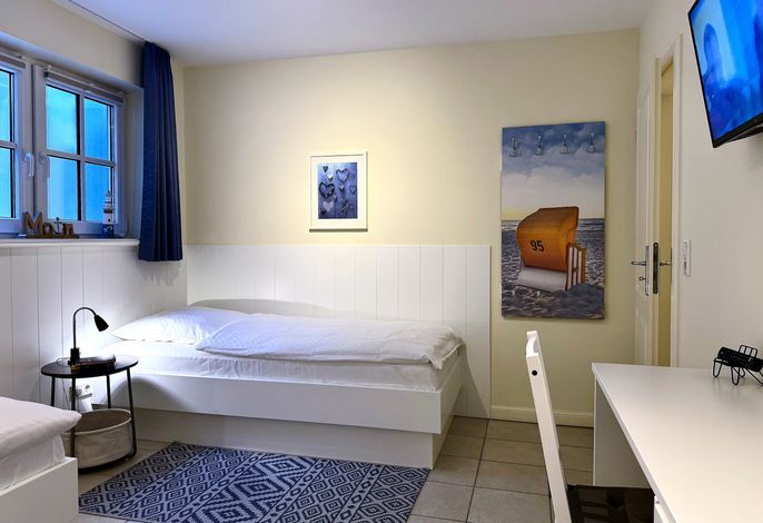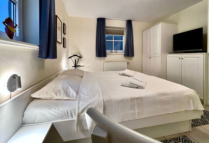 Herzlich Willkommen in unserem ruhig gelegenen, exklusiven Appartement. Die hochwertige Möblierung sowie die großzügig geschnittenen, lichtdurchfluteten Räume kennzeichnen diese außergewöhnliche Ferienwohnung. Das Haus mit 4 Wohnungen steht in unmittelbarer Nähe vom Südstrand in Wyk. Von der geschützt liegenden, großzügigen Südterrasse genießen Sie den Blick auf das kleine Wäldchen und die Atmosphäre der unmittelbar dahinter liegenden Nordsee. Während Sie gemütlich bei einem Glas Wein im Strandkorb den schönen Tag ausklingen lassen, toben Ihre Kinder im eigenen Garten. Abends oder bei Schietwetter machen Sie es sich am Kaminofen gemütlich oder entspannen sich in der eigenen Infrarotsauna und tanken mal wieder auf! Ein Appartement mit hohem Komfort.