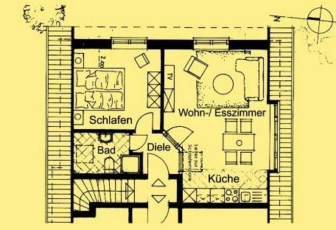 Mitten in Nieblum wohnen, nur wenige Schritte vom Dorfteich und 800m vom Strand entfernt, all das bietet Ihnen diese gemütlich eingerichtete und komfortabel ausgestattete OG-Wohnung.