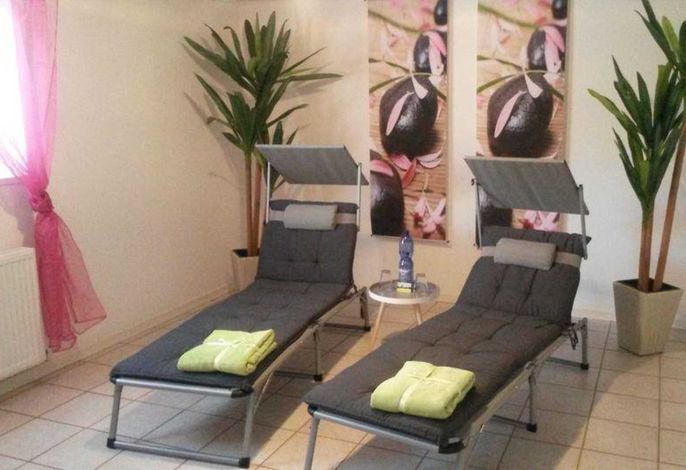 Sauna mit Ruheraum, Waschmaschine und Trockner stehen Ihnen im Gemeinschaftskeller gegen einen Aufpreis zur  Verfügung.