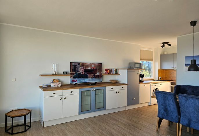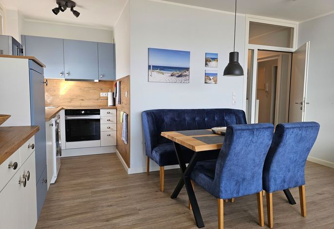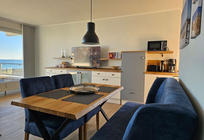 Die Ferienwohnung Bi de Wyk, Whg. A18 - Göntje bietet auf einer Fläche von 52 m² Platz für maximal 2 Personen. Sie verfügt über ein Schlafzimmer und ein Badezimmer und befindet sich im Haus Bi de Wyk in der 1. Etage. Zur Ausstattung gehören ein TV, kostenfreies WLAN und eine Kaffeemaschine (Filter). Haustiere sind in dieser Unterkunft nicht gestattet. Für einen angenehmen Aufenthalt stehen zudem eine Mikrowelle, ein Geschirrspüler, eine Waschmaschine und eine Küche (offen) zur Verfügung. Die Wohnung ist ausschließlich für Nichtraucher geeignet. Vom Balkon aus genießen Sie einen wunderbaren Meerblick.