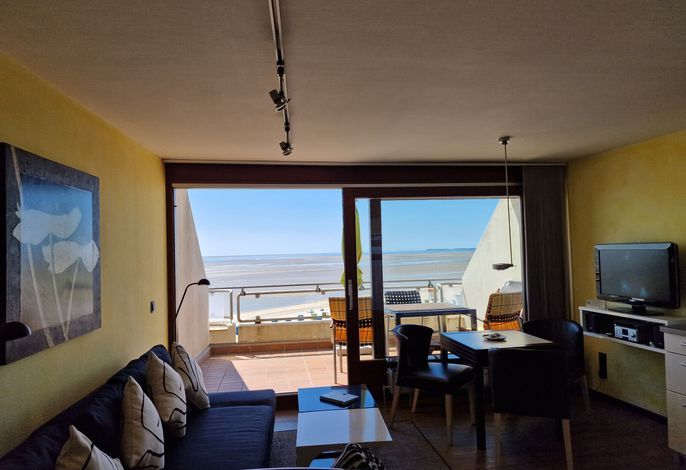 Auf dem Balkon können Sie den Blick auf das Meer und die umliegende Landschaft entspannt genießen. Zur Erholung steht Ihnen außerdem ein Schwimmbad im Appartementhaus zur Verfügung. Für Ihren PKW gibt es einen Parkplatz und auch Ihre Fahrräder können in einer Abstellmöglichkeit sicher untergebracht werden. Von der gemeinschaftlichen Sauna aus haben Sie einen Panoramablick.