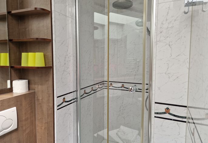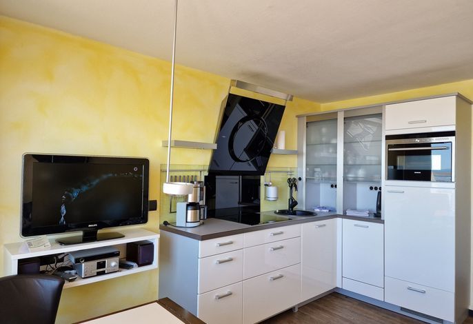 Im Wohnbereich gibt es eine gemütliche Couch und eine komfortabel ausgestattete Küche sowie zwei Schlafzimmer und ein Duschbad. Im Bi de Wyk steht an Wellness-Angeboten ein Schwimmbad zur kostenfreien Nutzung und eine Sauna (mit Gebühr) zur Verfügung - so kommt auch Ihre Gesundheit nicht zu kurz. Ihre Fahrräder können Sie im abschließbaren Fahrradabstellraum unterbringen. Zur Wohnung gehört ein Parkplatz in der Tiefgarage.