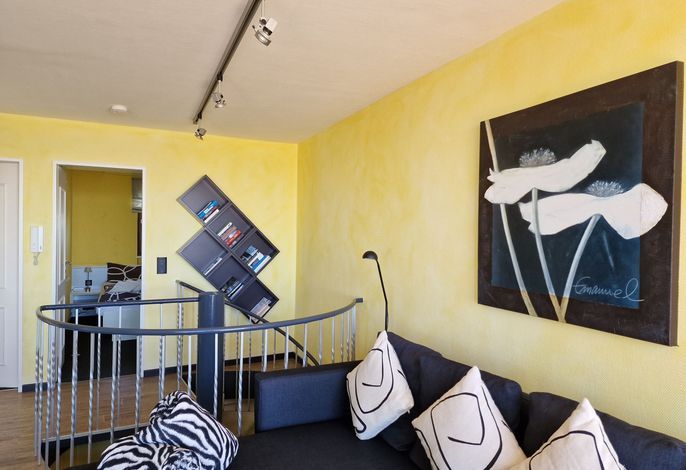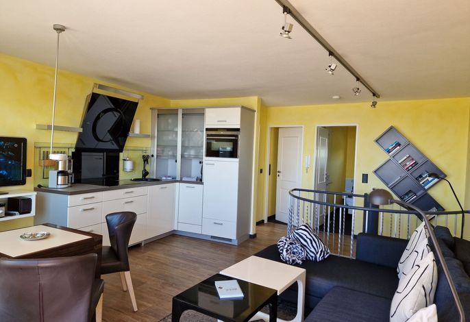 Die Wohnung befindet sich im 3. Stock im mittleren Bereich vom Gebäude (vom Meer aus gesehen) und verfügt über einen Südbalkon. Bitte beachten Sie, dass der Aufzug nur bis zum 2. Stock fährt. In der Wohnung gelangen Sie über eine Wendeltreppe vom Flur in den 3. Stock.