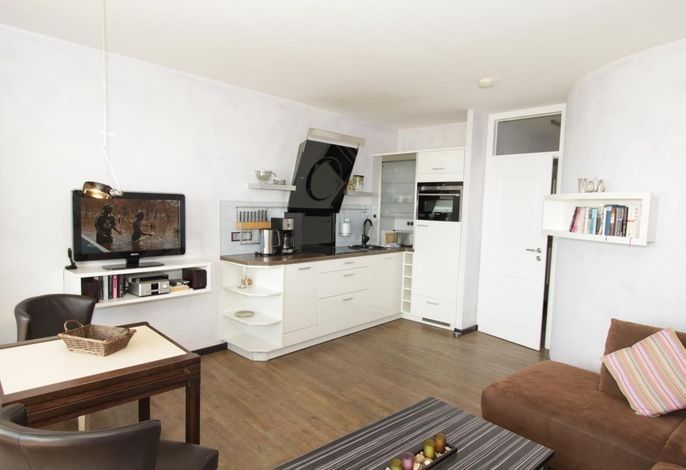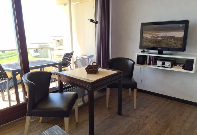 Die Wohnung befindet sich im 2. Stock im mittleren Bereich vom Gebäude (vom Meer aus gesehen) und verfügt über einen Südbalkon. Über den Aufzug können Sie die Wohnung bequem erreichen. Im Wohnbereich gibt es eine gemütliche Couch und eine komfortabel ausgestattete Küche sowie ein Schlafzimmer und ein Duschbad. Im Bi de Wyk steht an Wellness-Angeboten ein Schwimmbad zur kostenfreien Nutzung und eine Sauna (mit Gebühr) zur Verfügung - so kommt auch Ihre Gesundheit nicht zu kurz. Ihre Fahrräder können Sie im abschließbaren Fahrradabstellraum unterbringen. Ein Parkplatz steht leider nicht zur Verfügung.