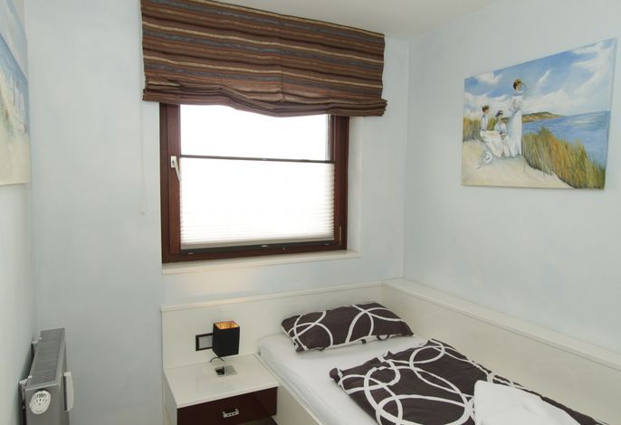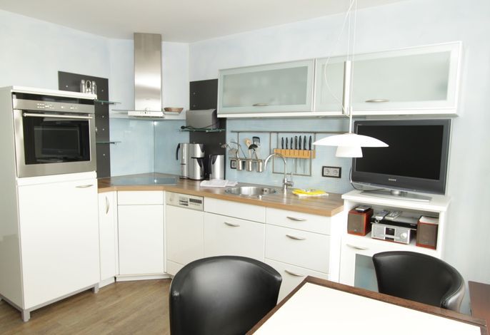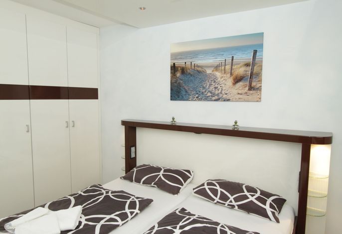 Im Wohnbereich gibt es eine gemütliche Couch und eine komfortabel ausgestattete Küche sowie zwei Schlafzimmer und ein Duschbad. Im Bi de Wyk steht an Wellness-Angeboten ein Schwimmbad zur kostenfreien Nutzung und eine Sauna (mit Gebühr) zur Verfügung - so kommt auch Ihre Gesundheit nicht zu kurz. Ihre Fahrräder können Sie im abschließbaren Fahrradabstellraum unterbringen. Zur Wohnung gehört ein Parkplatz in der Tiefgarage.