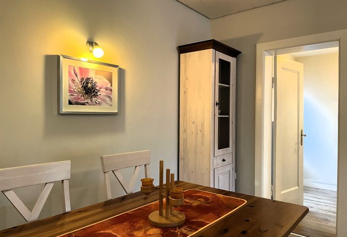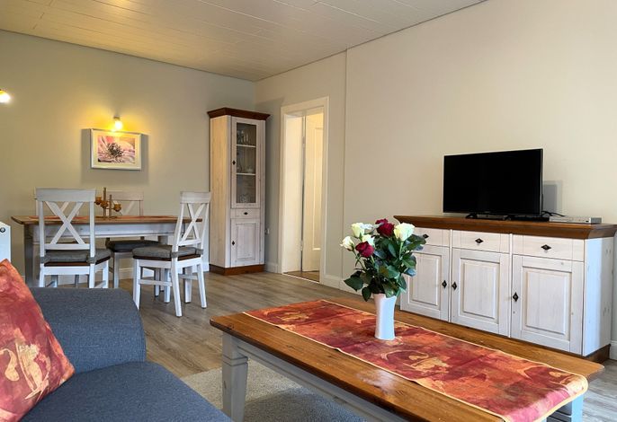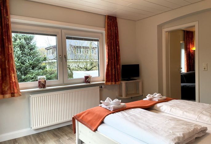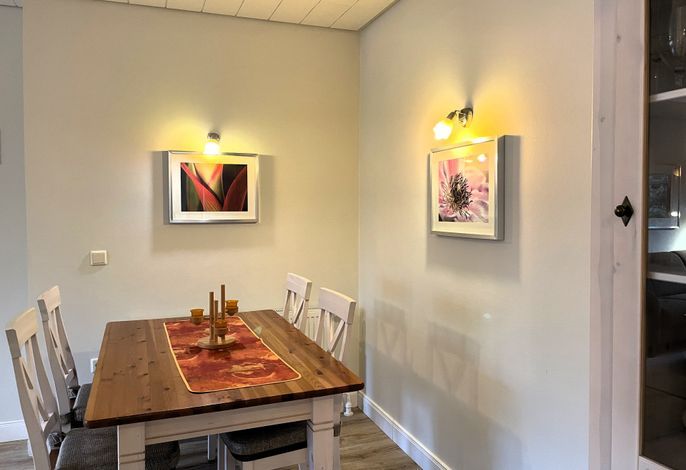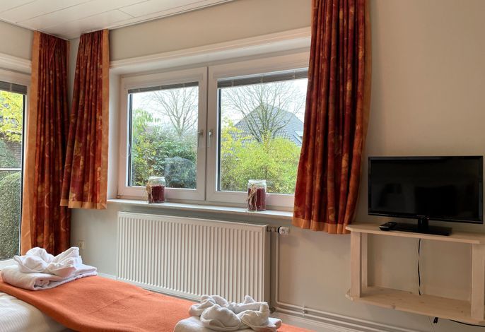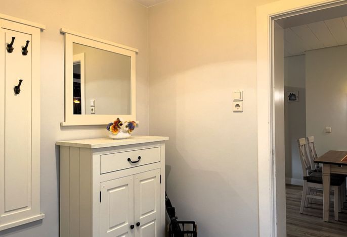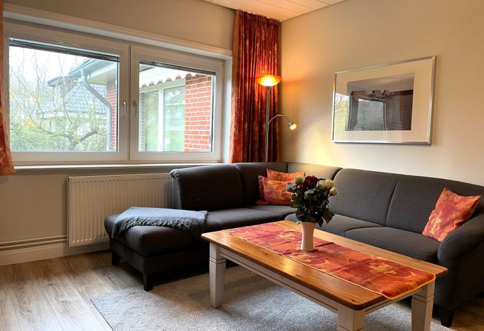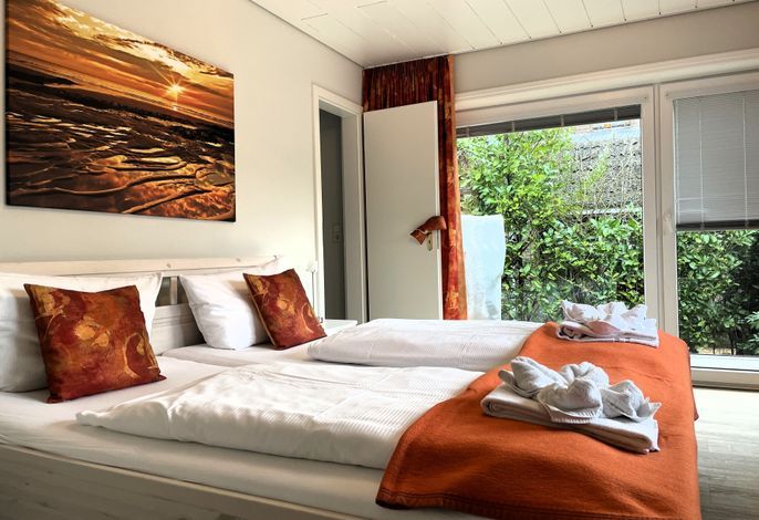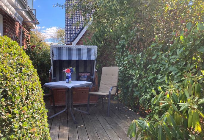 Das Haus Brossolat liegt zentral im Rebbelstieg unweit des bekannten Friesenmuseums. Das gepflegte Grundstück ist mit wunderschönen Blumen bewachsen und bietet Ihnen drei Wohnungen namens Brossolat EG, Brossolat EG2 und Brossolat OG jeweils mit separaten Eingängen. Die Wyker Innenstadt und der Stadtwald mit dem beliebten Abenteuerspielplatz sind nur wenige Gehminuten entfernt. Die nach hinten gelegene Erdgeschosswohnung Brossolat EG 2 liegt ruhig und eingebettet in dem gepflegten Garten des Hauses Brossolat. Durch einen separaten Eingang gelangen Sie in einen hellen und freundlichen Vorflur. Der Wohnbereich ist unterteilt in eine gemütliche Sitzecke mit Flachbild-TV, WLAN und großer Fensterfront sowie dem geräumigen Essplatz im nordischen Stil. Das großzügige Schlafzimmer mit einem zweiten Fernseher verfügt über einen eigenen Ankleideraum. Von hier gelangen Sie ebenfalls auf den Terrassenplatz mit Gartenmöbeln, der zum friedlichen Verweilen einlädt. In der vollausgestatten Küche mit Backofen, Ceranfeld, Mikrowelle und guter Austattung finden Sie eine weitere kleine Essmöglichkeit vor. Das helle Badezimmer mit Badewanne und Fenster ist im maritimen Stil gehalten. Die Wohnung Brossolat EG 2 ist ein Domizil, in welchem Sie sich schnell wohlfühlen und Ihre Urlaubstage genießen können. Liebevolle Details und warme orange-rötliche Farben geben dieser Wohnung einen ganz individuellen und luxuriösen Glanz.
