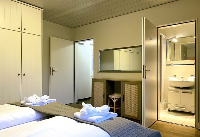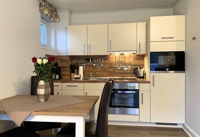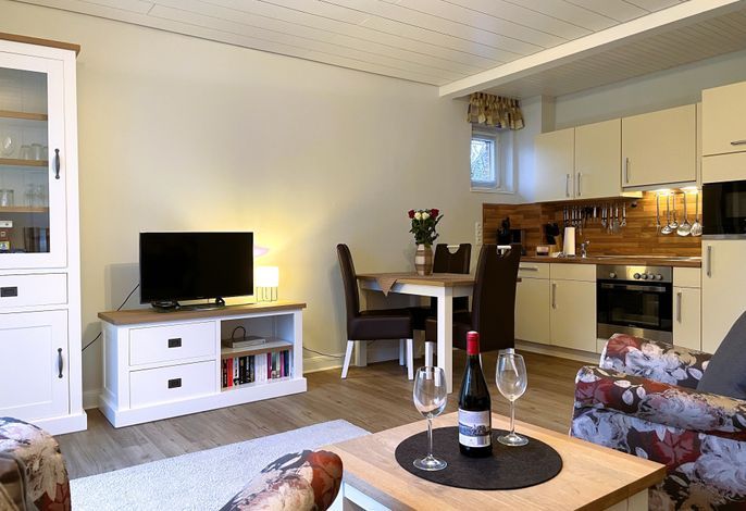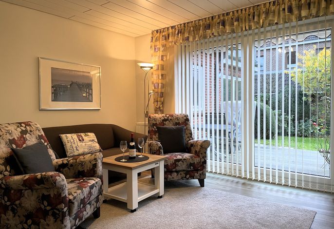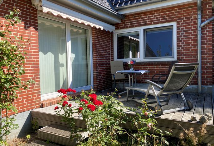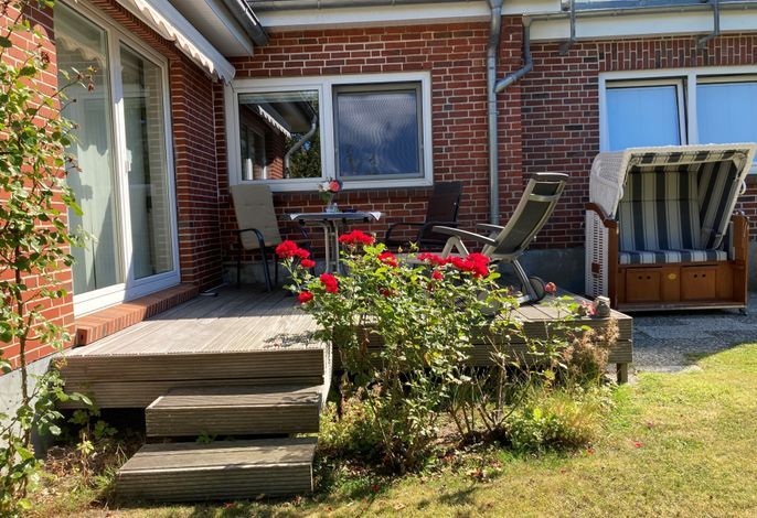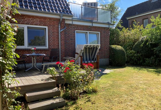 Das Haus Brossolat liegt zentral im Rebbelstieg unweit des bekannten Friesenmuseums. Das gepflegte Grundstück ist mit wunderschönen Blumen bewachsen und bietet Ihnen drei Wohnungen namens Brossolat EG, Brossolat EG2 und Brossolat OG jeweils mit separaten Eingängen. Die Wyker Innenstadt und der Stadtwald mit dem beliebten Abenteuerspielplatz sind nur wenige Gehminuten entfernt. Die allergikerfreundliche Erdgeschoßwohnung Brossolat EG ist ca. 45 m groß und bietet 2 Personen PLatz für schöne Urlaubstage. Der liebevoll eingerichtete Wohnessbereich mit integrierter Küchenzeile ist der Mittelpunkt der Wohnung. Flachbild-TV, Stereoanlage und WLAN sind selbstverständlich vorhanden. Die Küchenzeile mit Ceranfeld, Backofen und Mikrowelle ist gut ausgestattet und der Essplatz bietet Platz für 3 Personen. Von diesem Raum aus gelangen Sie auch auf die schöne mit Blumen eingewachsene Südterrasse mit Gartenmöbeln, Liege und Strandkorb (April bis September). Durch einen Flur gelangen Sie in das großzügige, lichtdurchflutete Schlafzimmer mit Doppelbett und geräumigem Kleiderschrank. Hier kann ein Babybett zugestellt werden. Das kleine En-Suite-Bad mit Dusche ist hell gefliest und verfügt über ein Fenster. Im Keller des Hauses befindet sich Waschmaschine und Trockner zur kostenfreien Nutzung. Eine ansprechende Wohnung für die schönsten Tage des Jahres!