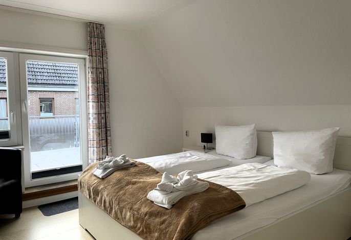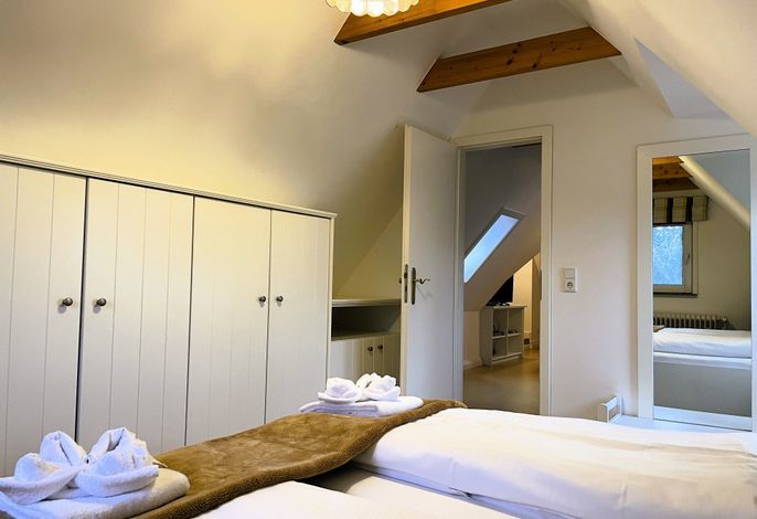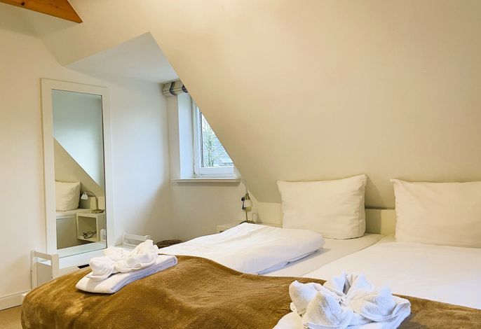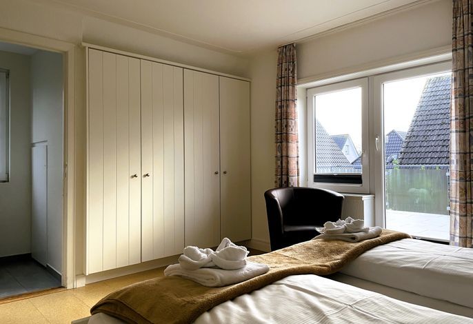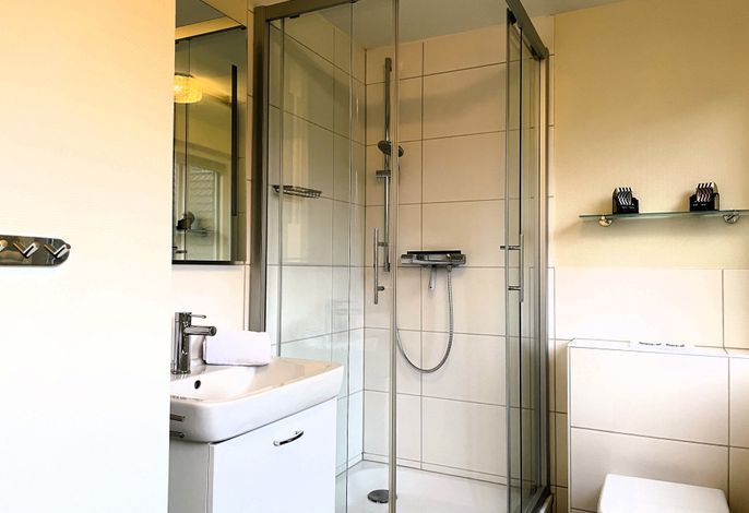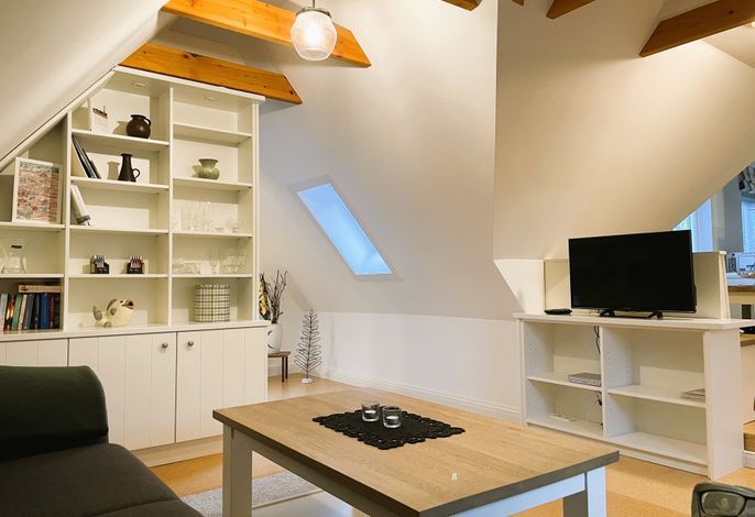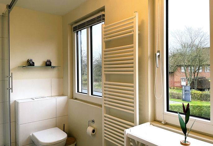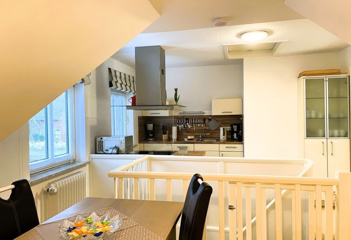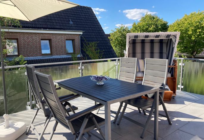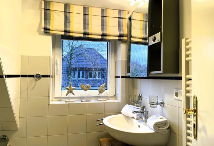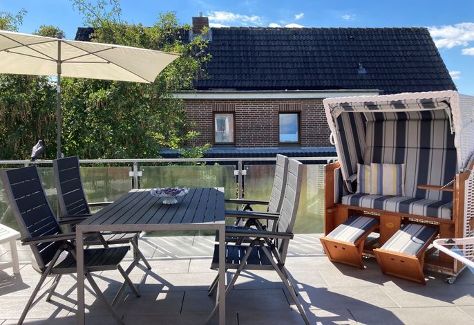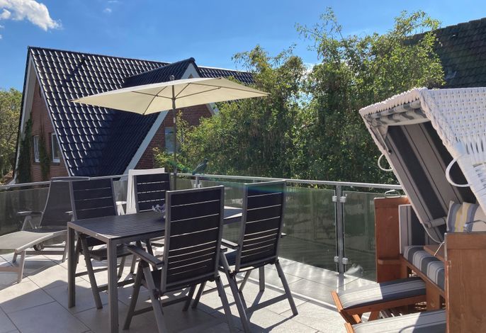 Das Haus Brossolat liegt zentral im Rebbelstieg unweit des bekannten Friesenmuseums. Das gepflegte Grundstück ist mit wunderschönen Blumen bewachsen und bietet Ihnen drei Wohnungen namens Brossolat EG, Brossolat EG2 und Brossolat OG jeweils mit separaten Eingängen. Die Wyker Innenstadt und der Stadtwald mit dem beliebten Abenteuerspielplatz sind nur wenige Gehminuten entfernt. Die exklusive und geschmackvolle Obergeschoßwohnung Brossolat OG befindet sich im ersten Stock des Hauses Brossolat und besticht mit Ihrem ganz eigenem Charme. Der offene Wohnbereich ist hell und freundlich. Hier finden Sie sowohl eine gemütliche Sitzecke mit großem Flachbild-TV,WLAN und Stereoanlage vor als auch den einladenden Essbereich mit hauseigenem Hochstuhl und eine kleine Kinderecke zum Malen und Spielen. Die offen gehaltene Küche ist charmant und sehr gut ausgestattet mit Spülmaschine, Mikrowelle, Ceranfeld und Backofen kann man hier wunderbar die friesischen Gerichte nachkochen und dabei doch am Familienleben teilhaben dank der herrlich offenen Architektur, die Küche und Wohnbereich so harmonisch vereint. Ein helles Schlafzimmer mit Doppelbett und Fernseher ermöglicht den Weg auf die nach Süden ausgerichtete Dachterrasse (ca.20m), welche mit ihren Gartenmöbeln im Sommer zu herrlichen Sonnenstunden einlädt. Das zweite Schlafzimmer ebenfalls mit Fernsehgerät und einem kleinen Schranktresor wirkt behaglich und lädt zu schönen Träumen ein. Hier schließt sich das zweite helle Badezimmer mit Dusche an. Im Keller befindet sich zur gemeinschaftlichen Nutzung eine Waschmaschine und ein Trockner, die Ihnen kostenlos zur Verfügung stehen.