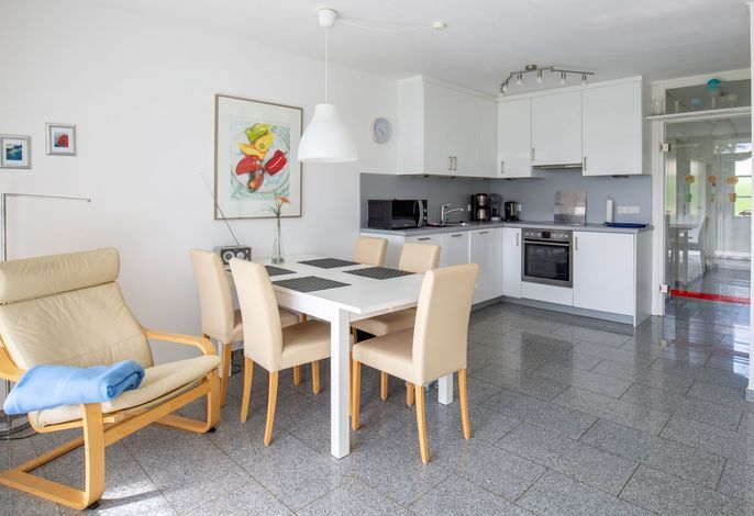 Ein großzügiger Essplatz für 4 Personen lädt zum Essen und Verweilen ein.