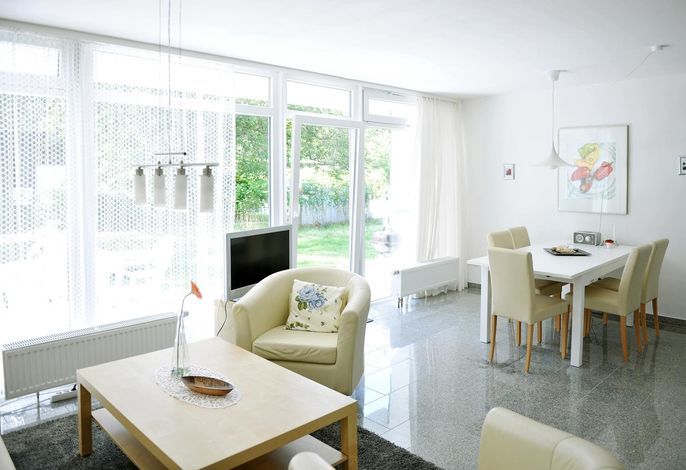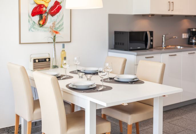 Ein großzügiger Essplatz für 4 Personen lädt zum Essen und Verweilen ein.