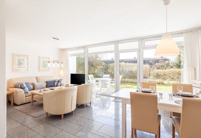 Ruhig gelegener Bungalow.Der gemütliche Wohnbereich bietet neben SAT-TV auch viel Gemütlichkeit z.B. zum Lesen oder Ausruhen. Der Schlafbereich mit Doppelbett ist vom Wohnbereich durch einen Vorhang getrennt.Ein großzügiger...