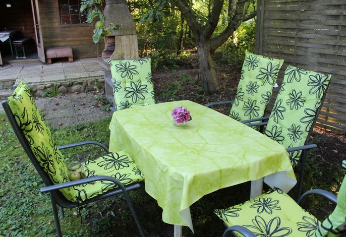 Auf dem landwirtschaftlichen Betrieb stehen im Garten Sitzecken mit Strandkorb und Grillmöglichkeiten bereit, hier kann man gemütlich den Tag ausklingen lassen und die Kinder können auf dem hofeigenen Spielplatz toben.