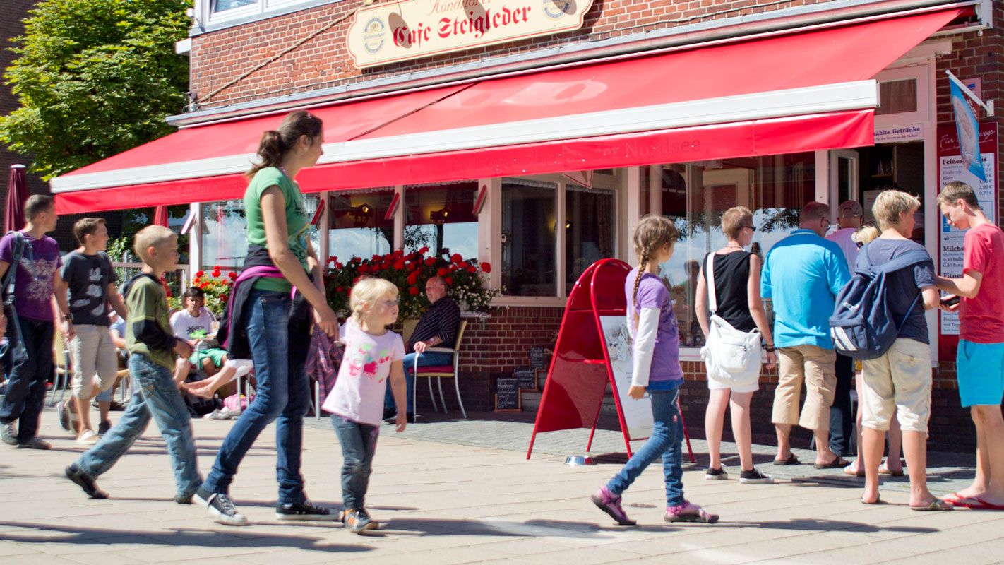 ...deutschen Klassikern wie dem Frankfurter Kranz an. Die hauseigene Konditorei stellt täglich eine verführerische Auswahl an Feinstbackwaren für Sie her. Falls Sie diese lieber am Strand verzehren, alles gibt es zum Mitnehmen. Wer im Café verweilt, genießt den einmaligen Blick vom Logenplatz auf die Nordsee.