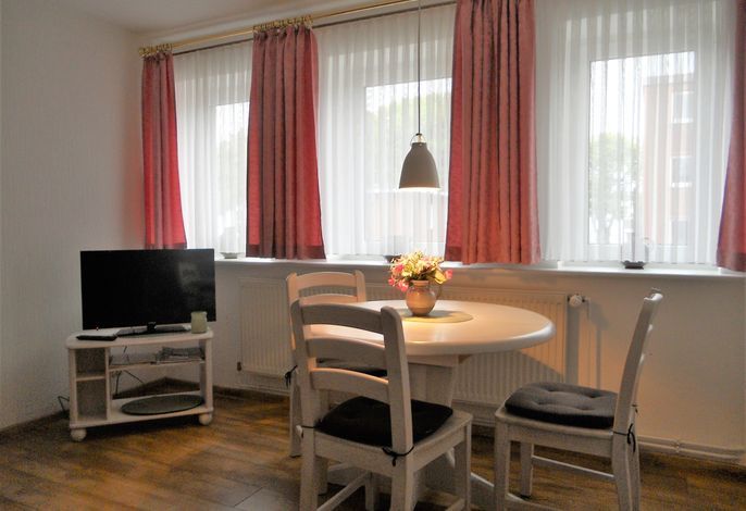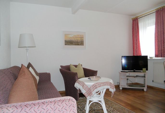 Unsere schöne Wohnung Carstensen 03 (ca.43m) liegt im ersten Obergeschoss des Haus Carstensen unweit der Wyker Innenstadt und dennoch ruhig gelegen nur ca. 100m vom Strand entfernt. Liebevoll eingerichtet und mit netten Accessoires versehen, können hier 2 Personen einen schönen Urlaub erleben. Das großzügig geschnittene Wohnzimmer mit bequemer Sitzecke, Flachbild-TV, WLAN und freundlichem Essplatz ist der Mittelpunkt der Wohnung und lädt zum Verweilen ein. Das Schlafzimmer mit Doppelbett und großem Kleiderschrank in Kiefer strahlt eine behagliche Gemütlichkeit aus. Die kleine, separate Pantryküche mit 2-Plattenherd ist funktional und gepflegt ebenso wie das Badezimmer mit Dusche, Kippfenster und Handtuchheizung. Der gepflegte Garten mit großer Liegewiese und Gartenmöbel steht zur gemeinschaftlichen Nutzung bereit und bietet Ihnen eine hervorragende Sicht auf die Mühle. Ein PKW-STellplatz befindet sich am Haus. Genießen Sie einen ruhigen und entspannten Urlaub in absoluter, ruhiger Top-Lage - dennoch nahe am pulsierenden Leben. Der Sandwall und Innenstadtbereich laden mit seinen Cafes und seiner bunten Geschäftswelt zum Bummeln ein oder Sie genießen Föhr bei einem Strandspaziergang, wo Sie die Möwen und das Wattenmeer beobachten können.