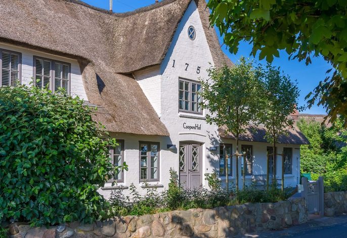 Coopershof, Kapitänsvilla - Platz für 8 Personen auf 265 qm.Erstmals erwähnt wurde diese großzügige Kapitänsvilla in einmaliger Lage am Meer um 1740. Heute erwartet Sie Coopers Hof als Ihr persönliches Hideaway für Inspiration, Kreativität und neue Sichtweisen, die aus der Tradition dieses Kraftorts erwachsen. Coopers Hof bietet Ihnen und Ihrer Familie, guten Freunden, Zeit- und Freigeistern – alle Voraussetzungen für Balance, Entspannung, Ausgelassenheit und Intimität in der Atmosphäre eines großzügigen Privathauses mit Kunst, ausgesuchter Einrichtung, einem wundervollen Garten, dem Blick über die Halligen bis Amrum, den Salzwiesen und dem Naturstrand vor der Tür. Alles nur wenige Minuten auf der Traumstraße vom idyllischen Friesenort Nieblum entfernt. Legen Sie die Hektik des Alltags ab und genießen Sie einfach.