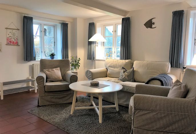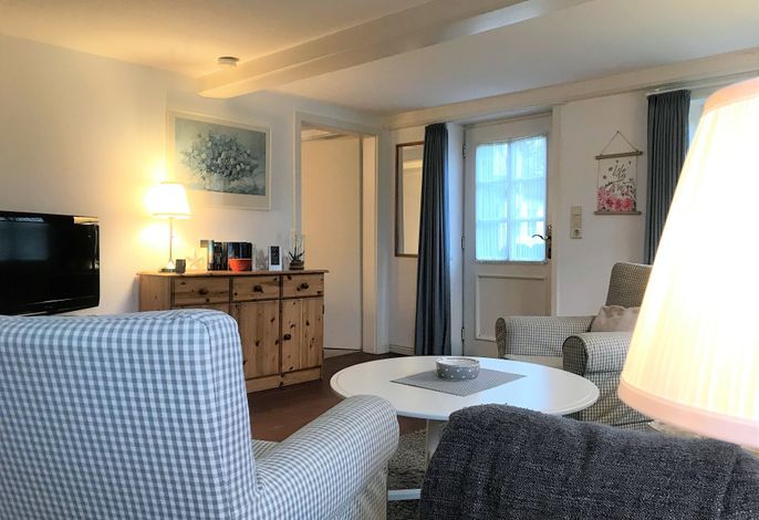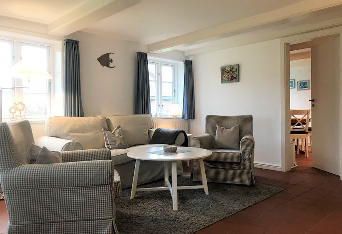 Unser Deichgraf im Haus Arfsten in Nieblum lädt 2 bis 4 Personen zu herrlichen Urlaubstagen ein. Die im Erdgeschoss befindliche Wohnung mit einer Größe von ca. 54 qm unterteilt sich in ein Duschbad mit Fenster, eine Küchenzeile mit Herd und Cerankochfeld, Kühlschrank mit Gefrierfach, einem Geschirrspüler sowie einer rustikalen Essgruppe, einem gemütlichem Wohnbereich mit einem Zweisitzer und 2 Sesseln und einem Schlafzimmer mit Doppelbett sowie einem Kinderzimmer mit zwei Einzelbetten. Die Eigentümerin hat mit liebevollen Accessoires Ihre Wohnung eingerichtet und die rustikalen Holzmöbel verleihen der Wohnung eine angenehm warme Ausstrahlung. Zu der Wohnung gehört im gemeinschaftlichem Garten eine eigene Sitzgelegenheit und der weitläufige Garten lädt Kinder dazu ein, sich austoben zu können. Friesische Gastfreundschaft heißt Sie willkommen in dem beschaulichen Nieblum. Lassen Sie sich verzaubern bei einem kleinen Spaziergang durch die malerischen Gassen.