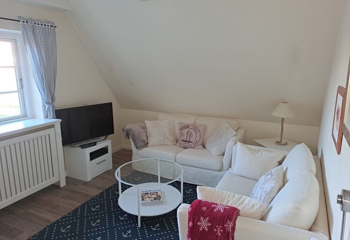 Herzlich Willkommen in Dunsum! Diese hyggelige Ferienwohnung im Obergeschoss eines Reetdachhauses werden Sie lieben! Für 3 Erwachsene plus Kleinkind bis 3 Jahre ist hier auf 46 m² alles auf wunderschönen Urlaub eingestellt.