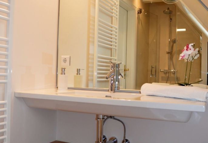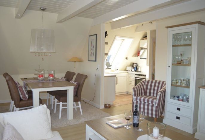 Diese attraktive Obergeschoss-Wohnung (ca. 66 m²) für 2 Personen plus Kleinkind in einem Einzelhaus mit 6 Wohneinheiten im Deichhof besticht durch Ruhe und Gemütlichkeit auf hohem Wohnniveau.