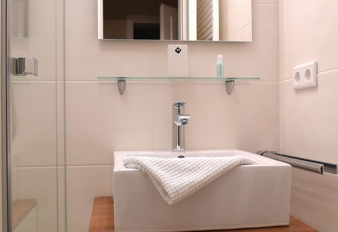 Die geschmackvoll und liebevoll eingerichtete Wohnung besteht aus einem Schlafzimmern und einem Wohnraum. Die Küche ist ausgestattet mit hochwertigen Markengeräten. Auch das Bad glänzt mit moderner Ausstattung.