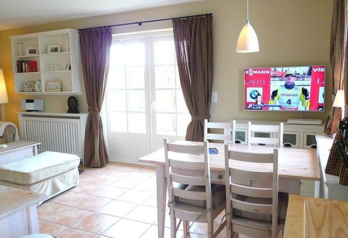 Die zum Süden hin gelegene Terrasse und der große eigene Garten mit Friesenwall, Obstbäumen und Gartenmöbeln laden zum Entspannen, Spielen und Träumen ein. Desweiteren steht ein gemeinsamer Grillplatz zur Verfügung.