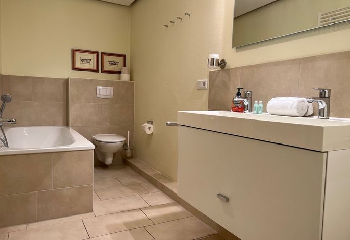 Zu der Ferienwohnung gehört auch ein PKW - Stellplatz. In wenigen Fußmetern erreichen Sie das Waschhaus auf dem Grundstück der Deichhofanlage mit Waschmaschinen und Trocknern, die Ihnen gegen Gebühr zur Verfügung stehen.