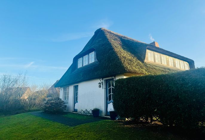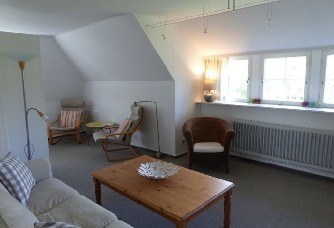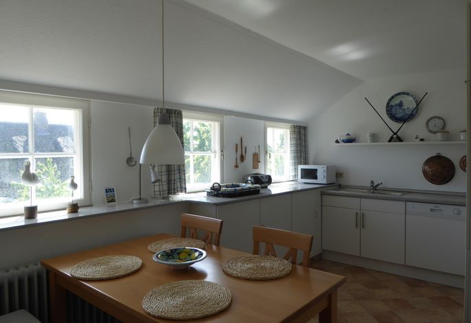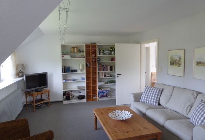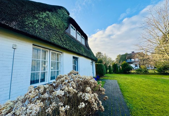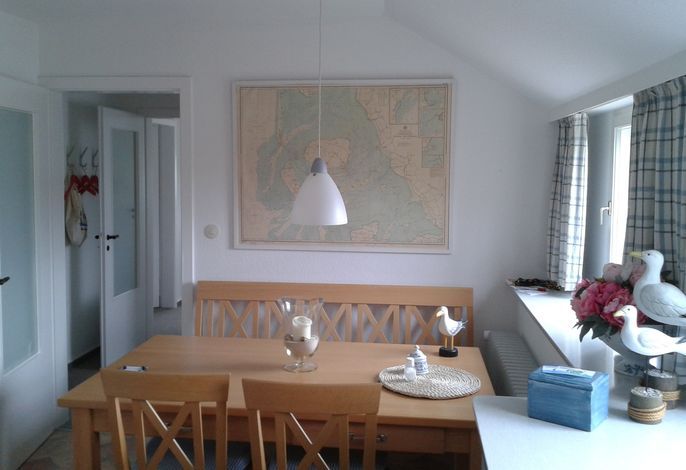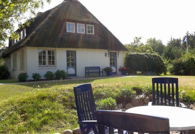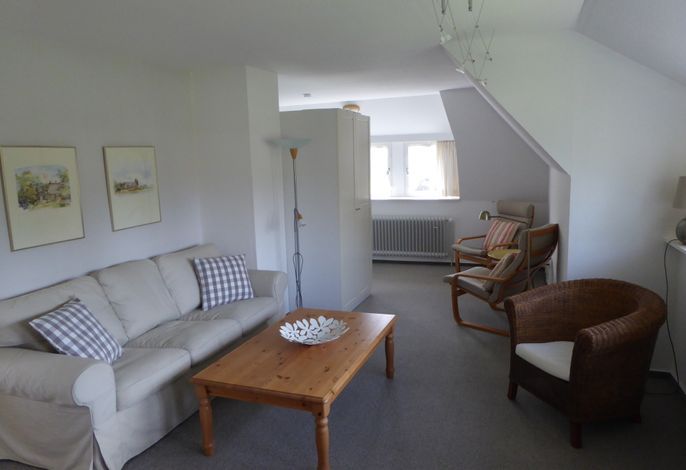 Auf einem sonnigen Gartengrundstück am Ende einer Sackgasse liegt die schöne und ruhige Ferienwohnung in Nieblum/Föhr. Die großzügig geschnittene Wohnung im 1. Obergeschoß bietet Platz für 4 Personen plus Kleinkind.