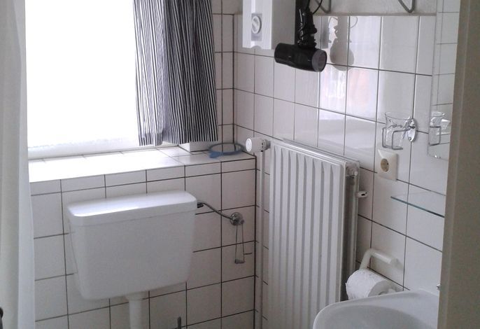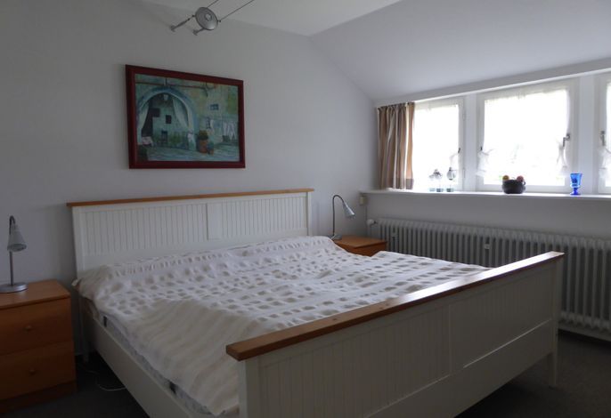 Die helle und gemütliche 3-Zimmer- Ferienwohnung im Obergeschoss ist ausgestattet mit einem Schlafzimmer (Doppelbett ), 2 Duschbädern, einer Küche mit großem Essbereich und einem kombinierten Wohn-/Schlafzimmer. Die Bereiche im Wohn-/Schlafzimmer sind mit einem Raumteiler abgetrennt und auch hier steht Ihnen ein großes Doppelbett (180x200) zur Verfügung. Im Keller kann die Waschmaschine gemeinschaftlich genutzt werden. Zur Wohnung gehört ein großer Garten und dort eine eigene Terrasse mit Gartenmöbeln. Ein KFZ Stellplatz befindet sich direkt am Haus.