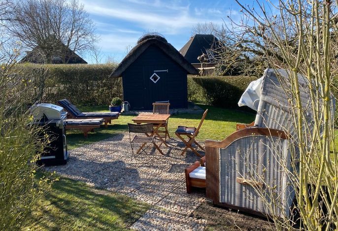 Zwei getrennte Schlafzimmer, einmal mit einem Doppelbett (1,60m x 2,00m) und einmal mit einem Einzelbett (0,90m x 2,00m), der gemütliche Wohn- und Essbereich mit offener Küche und das großzügige Bad stehen Ihnen ebenso zur Verfügung, wie kostenfreies WLAN, ein großes Smart-TV, ein Parkplatz direkt am Haus und Ihr eigener, großer Gartenbereich mit Gartenmöbeln und Strandkorb.