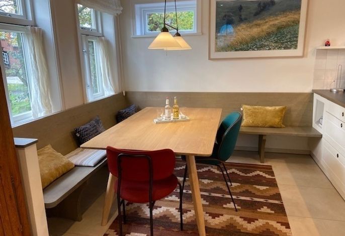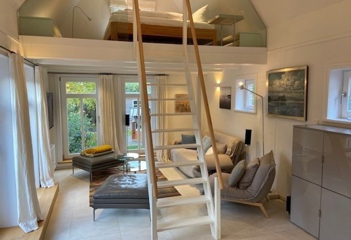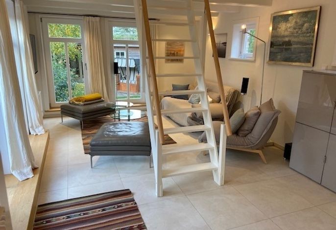 Mit viel Liebe zum Detail wurde das Haus aufwendig ausgestattet. Die Kombination aus modernen und antiken Möbelstücken verleiht dem Haus einen einzigartigen Charme. Eine Summe schöner Details, liebevolle ausgewählte Möbelstücke und eine Ausstattung mit schönen Fliesen und Holzarbeiten runden den perfekten Eindruck ab. Das Doras Hus ist ein altes, aber neu saniertes Ferienhaus für bis zu drei Personen. Der offene Wohnbereich erstreckt sich über zwei Etagen und verfügt ebenfalls über eine eigene Galerie. Die Küche ist großzügig mit z.B. einer Spülmaschine, einem Gasherd sowie einem Backofen ausgestattet. Hier finden Sie ebenfalls einen Kamin vor, welcher auch an kalten Tagen für eine wohlige Atmosphäre sorgt. Über eine Treppe gelangen Sie direkt in das Schlafzimmer, welches sich im Obergeschoss befindet.
